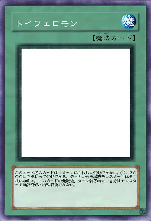 | このカード名のカードは1ターンに1枚しか発動できない。①:2000LPを払って発動できる。デッキから悪魔族モンスター1体を手札に加える。このカードの発動後、ターン終了時まで自分はモンスターを通常召喚・特殊召喚できない。 | |||