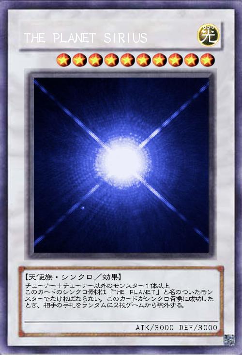 チューナー+チューナー以外のモンスター1体以上 このカードのシンクロ素材は「THE PLANET」と名のついたモン スターでなければならない。このカードがシンクロ召喚に成功したとき、相手の手札をランダムに2枚ゲームから除外する。 |
