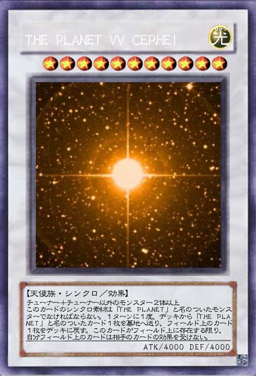 チューナー+チューナー以外のモンスター2体以上 このカードのシンクロ素材は「THE PLANET」と名のついたモンス ターでなければならない。1ターンに1度、デッキから「THE PLA NET」と名のついたカード1枚を墓地へ送り、フィールド上のカード1枚をデッキに戻す。このカードがフィールド上に存在する限り、自分フィールド上のカードは相手のカードの効果を受けない。 |