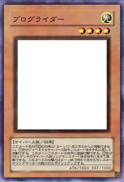 | このカード名の①②の効果は1ターンに1度どちらかしか発動できない。①自分フィールドのサイバース族モンスター1体を手札に戻して発動できる。このターンこのカードは相手に直接攻撃できる。②自分のEXデッキのサイバース族リンクモンスター1体を相手に見せて発動できる。このカードの攻撃力はターン終了時まで見せたモンスターのリンクマーカーの数×300ポイントアップする。 | |||