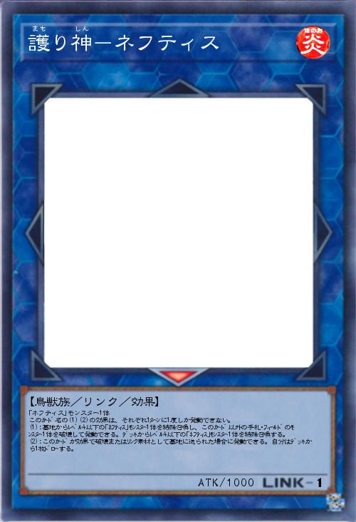 | 「ネフティス」モンスター1体 このカード名の(1)(2)の効果は、それぞれ1ターンに1度しか発動できない。 (1):墓地からレベル4以下の「ネフティス」モンスター1体を特殊召喚し、このカード以外の手札・フィールドのモンスター1体を破壊して発動できる。デッキからレベル4以下の「ネフティス」モンスター1体を特殊召喚する。 (2):このカードが効果で破壊またはリンク素材として墓地に送られた場合に発動できる。自分はデッキから1枚ドローする。 | |||