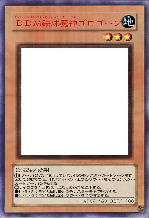 | ①1ターンに1度、使用していない隣のモンスターカードゾーンを指定して発動できる。自分フィールド上のこのカードをそのモンスターカードゾーンに移動する。 ②サイコロを1回振り、出た目の効果を適用する。 ●1・3・5:自分と同じ横列のモンスターを全て破壊する。 ●2・4・6:自分と同じ縦列のカードを全て破壊する。 | |||