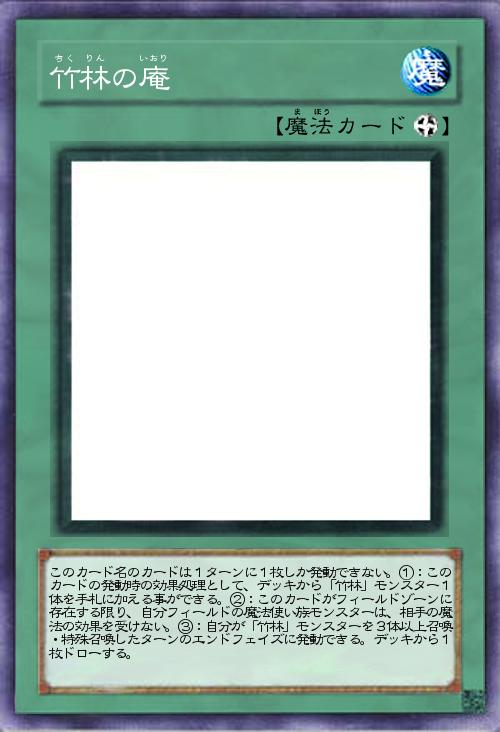 | このカード名のカードは1ターンに1枚しか発動できない。①:このカードの発動時の効果処理として、デッキから「竹林」モンスター1体を手札に加える事ができる。②:このカードがフィールドゾーンに存在する限り、自分フィールドの魔法使い族モンスターは、相手の魔法の効果を受けない。③:自分が「竹林」モンスターを3体以上召喚・特殊召喚したターンのエンドフェイズに発動できる。デッキから1枚ドローする。 | |||