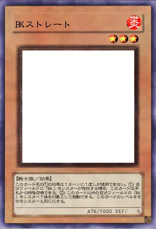 | このカード名の①の効果は1ターンに1度しか使用できない。①:自分フィールドに「BK」モンスターが存在する場合、このカードは手札から特殊召喚できる。②:このカード以外の自分フィールドの「BK」モンスター1体を対象として発動できる。このカードのレベルをそのモンスターと同じにする。 | |||