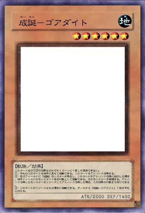 | このカード名の①③の効果はそれぞれ1ターンに1度しか使用できない。 ①:手札のこのカードを相手に見せて発動できる。このカードをアドバンス召喚する。 ②:自分フィールドに「成誕」モンスターが存在し、このカードがアドバンス召喚に成功した場合、相手フィールドのモンスター1体を対象として発動できる。そのモンスターを破壊する。アドバンス召喚したモンスターをリリースしてアドバンス召喚した場合、この効果の対象を2体にできる。 ③:このカードがリリースされた場合に発動できる。デッキから「成誕-ゴアダイト」1体を手札に加える。 | |||