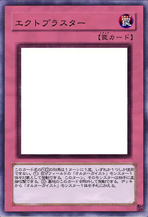 | このカード名の①②の効果は1ターンに1度、いずれか1つしか使用できない。①:自分フィールドの「オルターガイスト」モンスター1体を対象として発動できる。このターン、そのモンスターは相手に直接攻撃できる。②:墓地のこのカードを除外して発動できる。デッキから「オルターガイスト」モンスター1体を手札に加える。 | |||