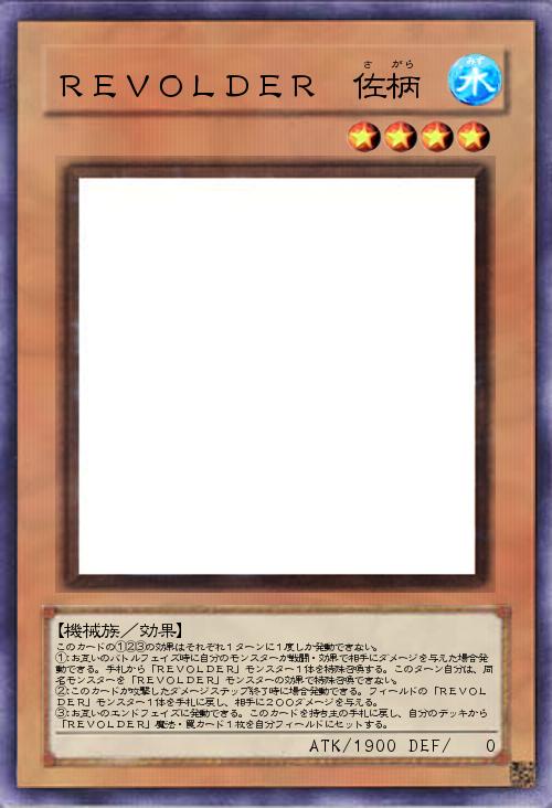 | このカードの①②③の効果はそれぞれ1ターンに1度しか発動できない。 ①:お互いのバトルフェイズ時に自分のモンスターが戦闘・効果で相手にダメージを与えた場合発動できる。手札から「REVOLDER」モンスター1体を特殊召喚する。このターン自分は、同名モンスターを「REVOLDER」モンスターの効果で特殊召喚できない。 ②:このカードが攻撃したダメージステップ終了時に場合発動できる。フィールドの「REVOLDER」モンスター1体を手札に戻し、相手に200ダメージを与える。 ③:お互いのエンドフェイズに発動できる。このカードを持ち主の手札に戻し、自分のデッキから「REVOLDER」魔法・罠カード1枚を自分フィールドにセットする。 | |||