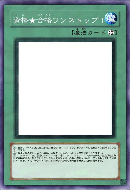 | ①:自分フィールド上に存在する、全ての「ワンストップ」モンスターの攻撃力・守備力は300アップする。 ②:お互いのエンドフェイズ毎に、このカードにワンストップカウンターを1つ置く。 ③:1ターンに1度、自分のメインフェイズ時に、ワンストップカウンターを任意の数だけ取り除いて発動できる。取り除いたワンストップカウンターの数と同じレベルの「ワンストップ」モンスター1体を、手札・デッキ・エクストラデッキから召喚条件を無視して特殊召喚する。 | |||