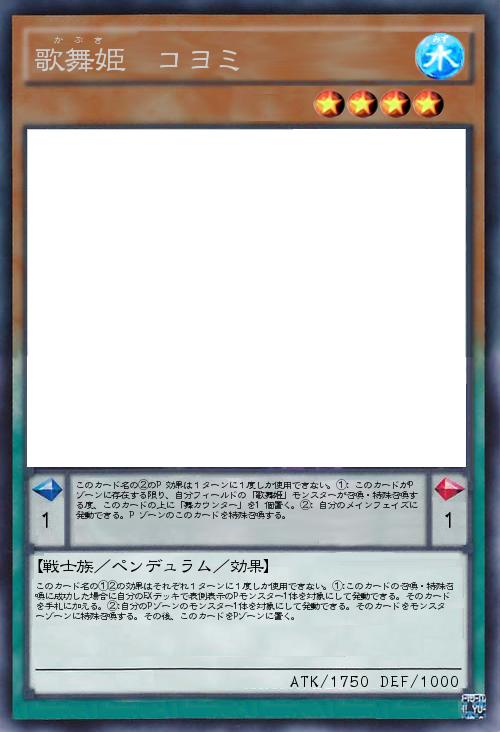 | このカード名の②のP効果は1ターンに1度しか使用できない。①:このカードがPゾーンに存在する限り、自分フィールドの「歌舞姫」モンスターが召喚・特殊召喚する度、このカードの上に「舞カウンター」を1個置く。②:自分のメインフェイズに発動できる。Pゾーンのこのカードを特殊召喚する。 | |||