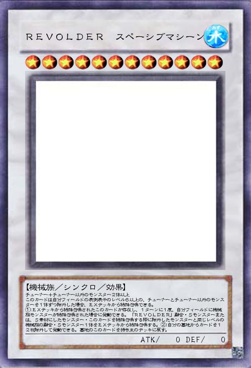 | チューナー+チューナー以外のモンスター2体以上 このカードは自分フィールドの表側表示のレベル6以上の、チューナーとチューナー以外のモンスターを1体ずつ除外した場合、EXデッキから特殊召喚できる。 ①:EXデッキから特殊召喚されたこのカードが存在し、1ターンに1度、自分フィールドに機械族モンスターが特殊召喚された場合に発動できる。「REVOLDER」融合・Sモンスターまたは、S素材にしたモンスター・このカードを特殊召喚する際に除外したモンスターと同じレベルの機械族の融合・Sモンスター1体をEXデッキから特殊召喚する。②:自分の墓地からカードを12枚除外して発動できる。墓地のこのカードを持ち主のデッキに戻す。 | |||