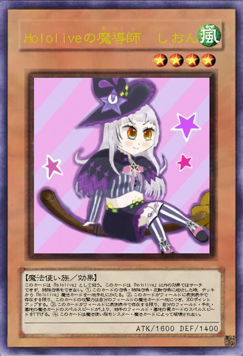 | このカードは「hololive」として扱う。このカードは「hololive」以外の効果ではサーチできず、特殊召喚もできない。①.このカードの召喚・特殊召喚・反転召喚に成功した時、デッキから「hololive」魔法カードを一枚手札に加える。②.このカードがフィールドに表側表示で存在する限り、このカードの攻撃力は自分のフィールドの魔法カード一枚につき、300ポイントアップする。③.このカードがフィールドに表側表示で存在する限り、自分のフィールド・手札・墓地の魔法カードのスペルスピードが1上り、相手のフィールド・墓地の罠カードのスペルスピードを1下げる。④.このカードは魔法使い族モンスター・魔法カードによって破壊されない。 | |||