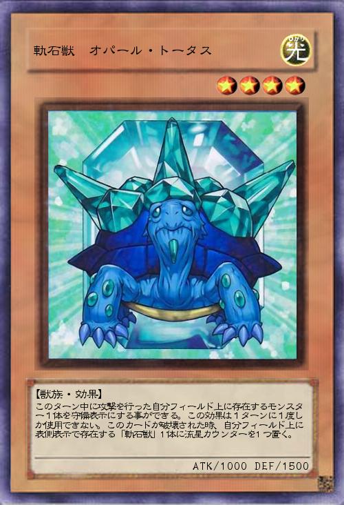 | このターン中に攻撃を行った自分フィールド上に存在するモンスター1体を守備表示にする事ができる。この効果は1ターンに1度しか使用できない。このカードが破壊された時、自分フィールド上に表側表示で存在する「軌石獣」1体に流星カウンターを1つ置く。 | |||