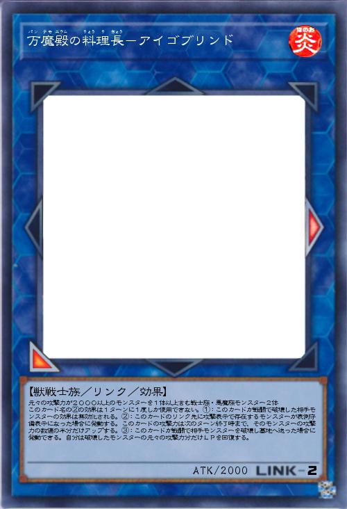 | 元々の攻撃力が2000以上のモンスターを1体以上含む戦士族・悪魔族モンスター2体 このカード名の②の効果は1ターンに1度しか使用できない。①:このカードが戦闘で破壊した相手モンスターの効果は無効化される。②:このカードのリンク先に攻撃表示で存在するモンスターが表側守備表示になった場合に発動する。このカードの攻撃力は次のターン終了時まで、そのモンスターの攻撃力の数値の半分だけアップする。③:このカードが戦闘で相手モンスターを破壊し墓地へ送った場合に発動できる。自分は破壊したモンスターの元々の攻撃力分だけLPを回復する。 | |||