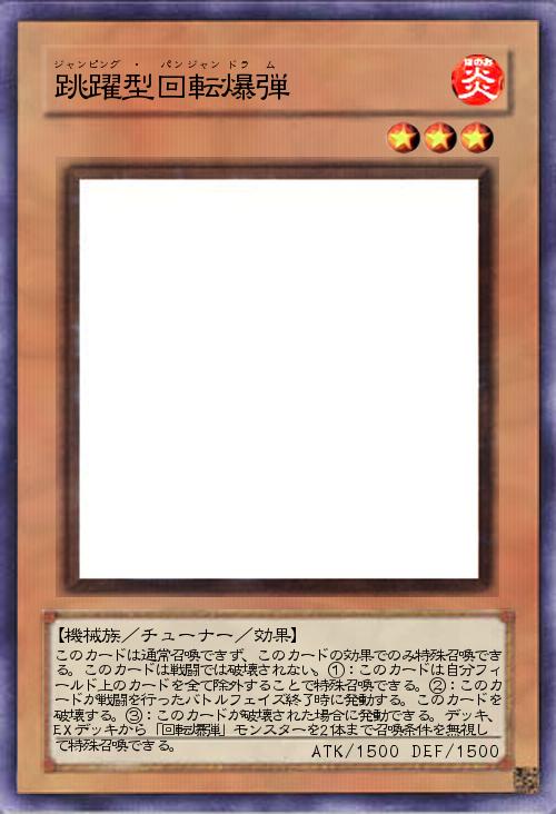 | このカードは通常召喚できず、このカードの効果でのみ特殊召喚できる。このカードは戦闘では破壊されない。①:このカードは自分フィールド上のカードを全て除外することで特殊召喚できる。②:このカードが戦闘を行ったバトルフェイズ終了時に発動する。このカードを破壊する。③:このカードが破壊された場合に発動できる。デッキ、EXデッキから「回転爆弾」モンスターを2体まで召喚条件を無視して特殊召喚できる。 | |||