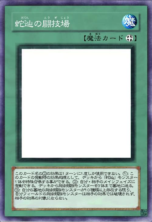 | このカード名の②の効果は1ターンに1度しか使用できない。①:このカードの発動時の効果処理として、デッキから「蛇辿」モンスター1体を特殊召喚する事ができる。②:自分・相手のメインフェイズに発動できる。デッキから爬虫類族モンスターを3体まで墓地に送る。③:自分の墓地の爬虫類族モンスターが10種類以上存在する限り、自分フィールドの爬虫類族モンスターは相手の効果では破壊されず、相手の効果の対象にならない。 | |||