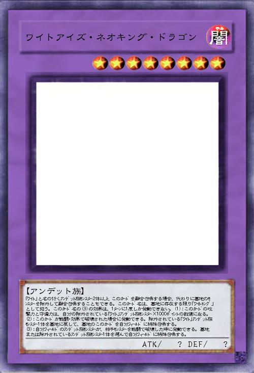 | 「ワイト」と名の付くアンデット族モンスター2体以上 このカードを融合召喚する場合、代わりに墓地のモンスターを除外して融合召喚することもできる。このカード名は、墓地に存在する限り「ワイトキング」として扱う。このカード名の(3)の効果は、1ターンに1度しか発動できない。(1):このカードの攻撃力と守備力は、自分の除外されている「ワイト」アンデット族モンスター×1000ポイントの数値になる。 (2):このカードが戦闘・効果で破壊された場合に発動できる。除外されている「ワイト」アンデット族モンスター1体を墓地に戻して、墓地のこのカードを自分フィールドに特殊召喚する。 (3):自分フィールドのアンデット族モンスターが、相手モンスターを戦闘で破壊した時に発動できる。墓地または除外されているアンデット族モンスター1体を選んで自分フィールドに特殊召喚する。 | |||