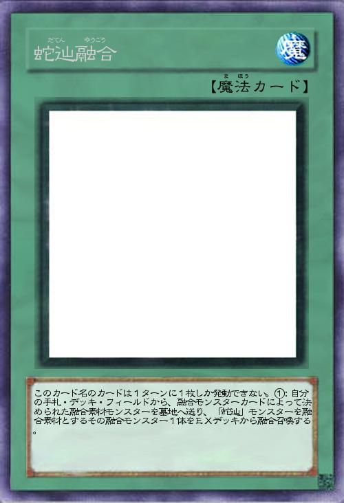| このカード名のカードは1ターンに1枚しか発動できない。①:自分の手札・デッキ・フィールドから、融合モンスターカードによって決められた融合素材モンスターを墓地へ送り、「蛇辿」モンスターを融合素材とするその融合モンスター1体をEXデッキから融合召喚する。 | |||