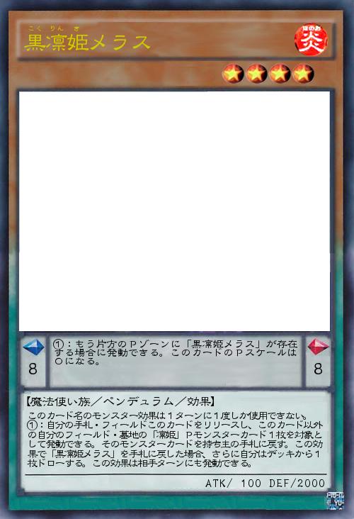 | ①:もう片方のPゾーンに「黒凛姫メラス」が存在する場合に発動できる。このカードのPスケールは0になる。 | |||