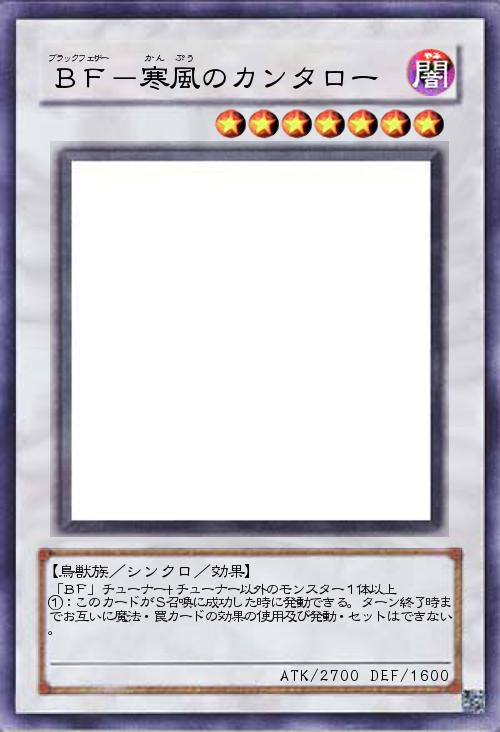| 「BF」チューナー+チューナー以外のモンスター1体以上 ①:このカードがS召喚に成功した時に発動できる。ターン終了時までお互いに魔法・罠カードの効果の使用及び発動・セットはできない。 | |||