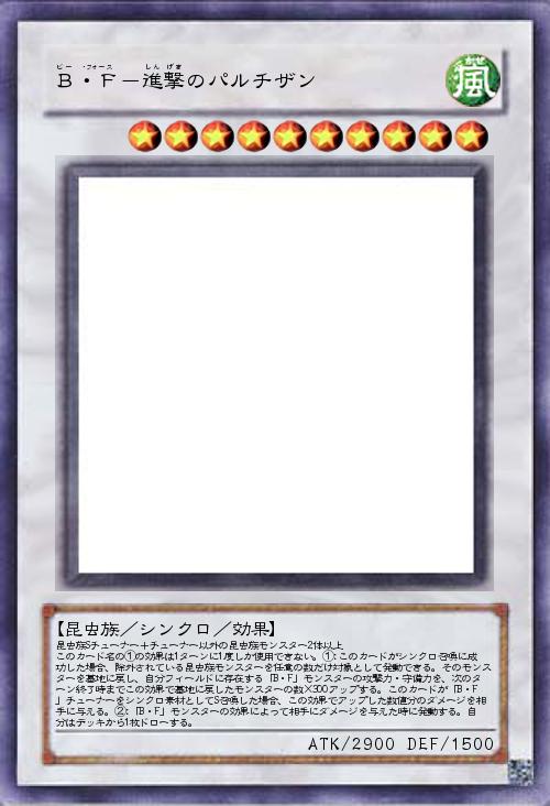 コメント頂きありがとうございます。「B・F」はSチューナーのいるテーマなので、それを利用したエースモンスターがいたら良いなと思ったので効果と場に出す条件の難しさを両立させるよう調整しました。」(2021-05-01 21:00)