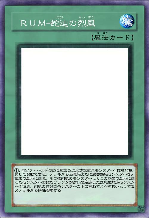 | ①:自分フィールドの恐竜族または爬虫類族Xモンスター1体を対象にして発動できる。デッキから恐竜族または爬虫類族モンスターを5体まで墓地に送る。その後対象のモンスターよりこの効果で墓地に送ったモンスターの数だけランクが高い恐竜族または爬虫類族モンスター1体を、対象の自分のモンスターの上に重ねてX召喚扱いとしてEXデッキから特殊召喚する。 | |||