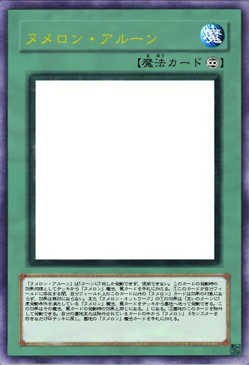 | 「ヌメロン・アルーン」は1ターンに1枚しか発動できず、使用できない。このカードの発動時の効果処理としてデッキから「ヌメロン」魔法、罠カードを手札に加える。①このカードが自分フィールドに存在する間、自分フィールド上のこのカード以外の「ヌメロン」カードは効果の対象にならず、効果は無効にならない。また「ヌメロン・ネットワーク」の①の効果は「互いのターンに1度発動条件を満たしている「ヌメロン」魔法、罠カードをデッキから墓地へ送って発動できる。この効果はその魔法、罠カードの発動時の効果と同じになる。」になる。②墓地のこのカードを除外して発動できる。自分の墓地または除外されているカードの中から「ヌメロン」 Xモンスターを好きなだけEXデッキに戻し、墓地の「ヌメロン」魔法カードを手札に加える。 | |||