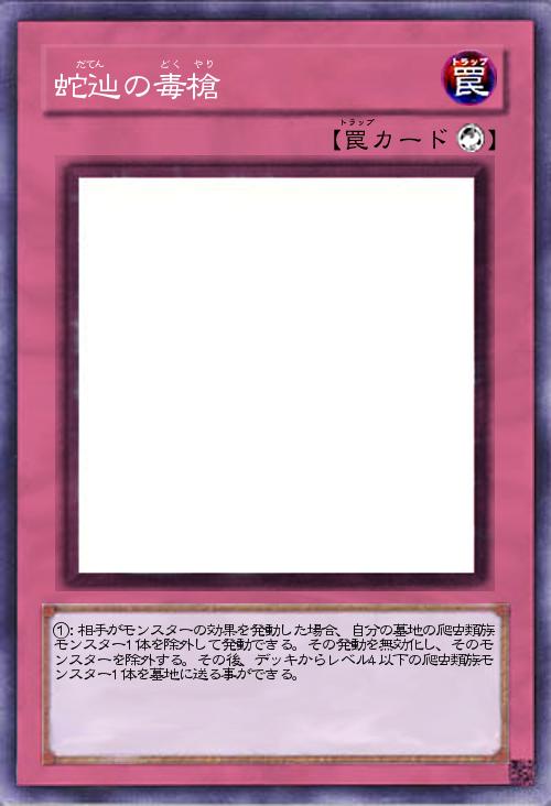 | ①:相手がモンスターの効果を発動した場合、自分の墓地の爬虫類族モンスター1体を除外して発動できる。その発動を無効化し、そのモンスターを除外する。その後、デッキからレベル4以下の爬虫類族モンスター1体を墓地に送る事ができる。 | |||