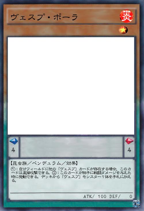 | ①:自分フィールドに他の「ヴェスプ」カードが存在する場合、このカードは直接攻撃できる。②:このカードが相手に戦闘ダメージを与えた時に発動できる。デッキから「ヴェスプ」モンスター1体を手札に加える。 | |||