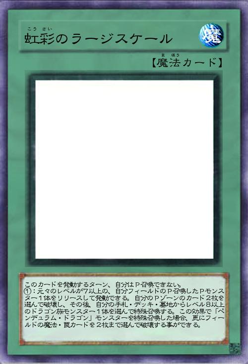 | このカードを発動するターン、自分はP召喚できない。 ①:元々のレベルが7以上の、自分フィールドのP召喚したPモンスター1体をリリースして発動できる。自分のPゾーンのカード2枚を選んで破壊し、その後、自分の手札・デッキ・墓地からレベル8以上のドラゴン族モンスター1体を選んで特殊召喚する。この効果で「ペンデュラム・ドラゴン」モンスターを特殊召喚した場合、更にフィールドの魔法・罠カードを2枚まで選んで破壊する事ができる。 | |||