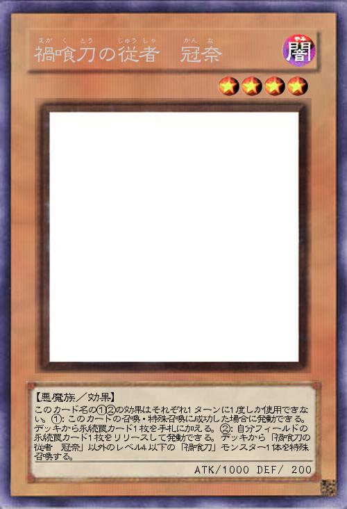 | このカード名の①②の効果はそれぞれ1ターンに1度しか使用できない。①:このカードの召喚・特殊召喚に成功した場合に発動できる。デッキから永続罠カード1枚を手札に加える。②:自分フィールドの永続罠カード1枚をリリースして発動できる。デッキから「禍喰刀の従者 冠奈」以外のレベル4以下の「禍喰刀」モンスター1体を特殊召喚する。 | |||