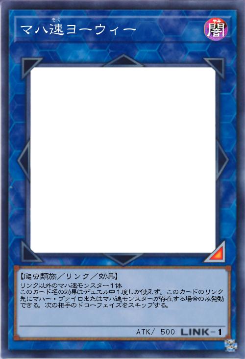 | リンク以外のマハ速モンスター1体 このカード名の効果はデュエル中1度しか使えず、このカードのリンク先にマハー・ヴァイロまたはマハ速モンスターが存在する場合のみ発動できる。次の相手のドローフェイズをスキップする。 | |||