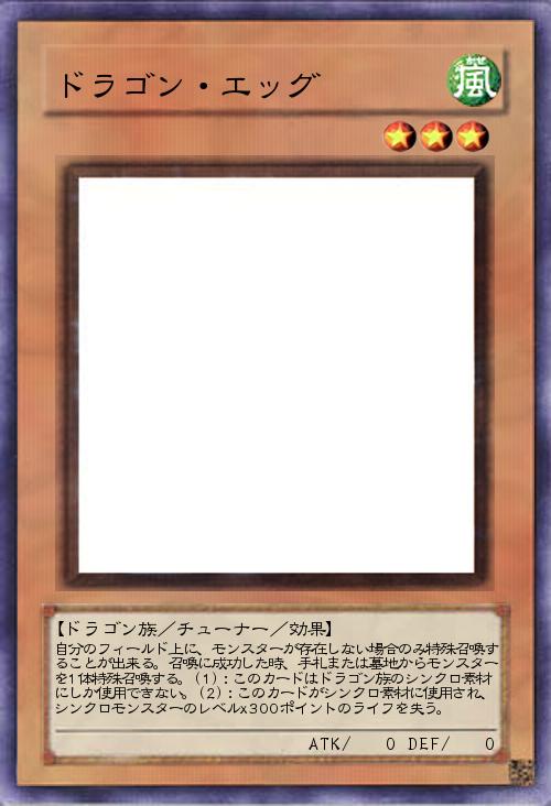 | 自分のフィールド上に、モンスターが存在しない場合のみ特殊召喚することが出来る。召喚に成功した時、手札または墓地からモンスターを1体特殊召喚する。(1):このカードはドラゴン族のシンクロ素材にしか使用できない。(2):このカードがシンクロ素材に使用され、シンクロモンスターのレベルx300ポイントのライフを失う。 | |||