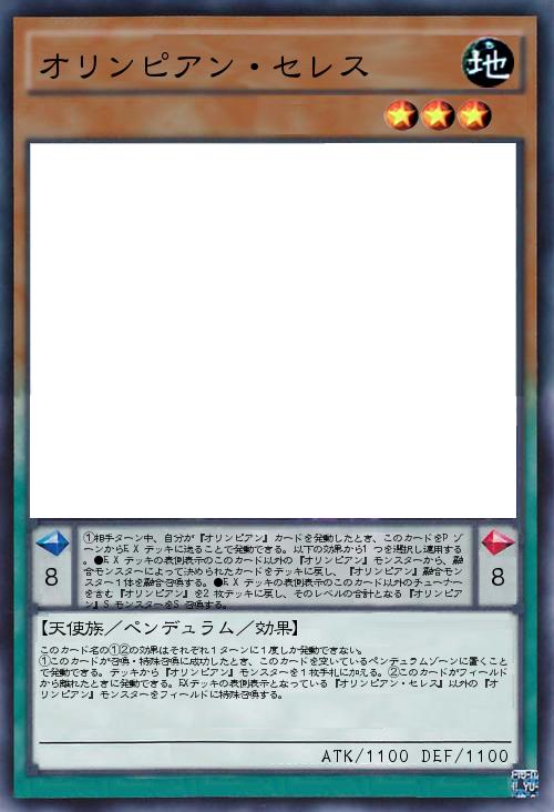 | このカード名の①②の効果はそれぞれ1ターンに1度しか発動できない。 ①このカードが召喚・特殊召喚に成功したとき、このカードを空いているペンデュラムゾーンに置くことで発動できる。デッキから『オリンピアン』モンスターを1枚手札に加える。②このカードがフィールドから離れたときに発動できる。EXデッキの表側表示となっている『オリンピアン・セレス』以外の『オリンピアン』モンスターをフィールドに特殊召喚する。 | |||