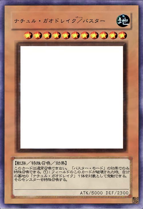 | このカードは通常召喚できない。「バスター・モード」の効果でのみ特殊召喚できる。①:フィールドのこのカードが破壊された時、自分の墓地の「ナチュル・ガオドレイク」1体を対象として発動できる。そのモンスターを特殊召喚する。 | |||