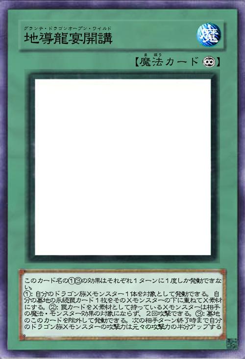 | このカード名の①③の効果はそれぞれ1ターンに1度しか発動できない。 ①:自分のドラゴン族Xモンスター1体を対象として発動できる。自分の墓地の永続罠カード1枚をそのXモンスターの下に重ねてX素材にする。②:罠カードをX素材として持っているXモンスターは相手の魔法・モンスター効果の対象にならず、2回攻撃できる。③:墓地のこのカードを除外して発動できる。次の相手ターン終了時まで自分のドラゴン族Xモンスターの攻撃力は元々の攻撃力の半分アップする。 | |||
