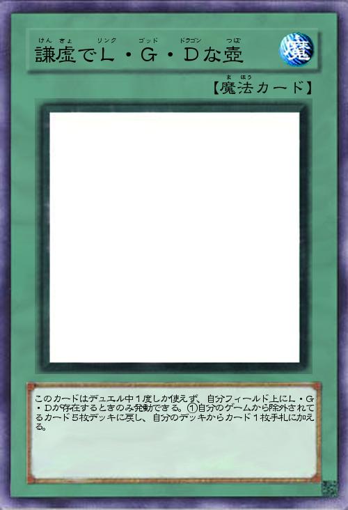 | このカードはデュエル中1度しか使えず、自分フィールド上にL・G・Dが存在するときのみ発動できる。①自分のゲームから除外されてるカード5枚デッキに戻し、自分のデッキからカード1枚手札に加える。 | |||