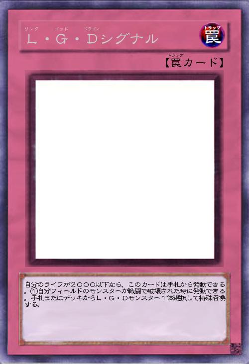 | 自分のライフが2000以下なら、このカードは手札から発動できる。①自分フィールドのモンスターが戦闘で破壊された時に発動できる。手札またはデッキからL・G・Dモンスター1体選択して特殊召喚する。 | |||