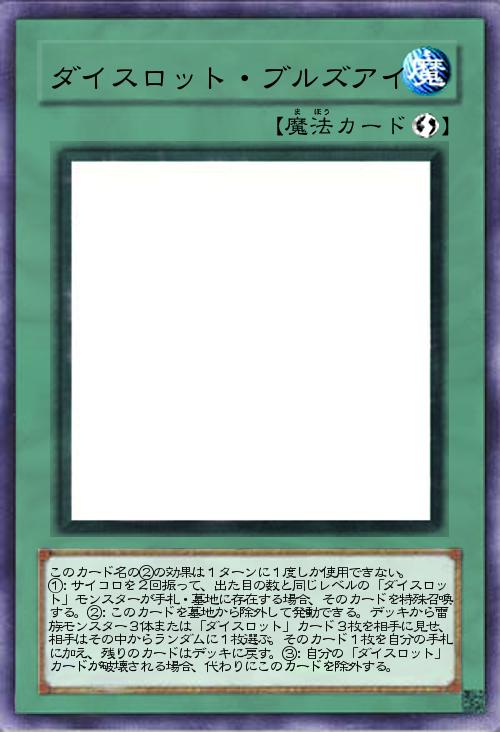 | このカード名の②の効果は1ターンに1度しか使用できない。 ①:サイコロを2回振って、出た目の数と同じレベルの「ダイスロット」モンスターが手札・墓地に存在する場合、そのカードを特殊召喚する。②:このカードを墓地から除外して発動できる。デッキから雷族モンスター3体または「ダイスロット」カード3枚を相手に見せ、相手はその中からランダムに1枚選ぶ。そのカード1枚を自分の手札に加え、残りのカードはデッキに戻す。③:自分の「ダイスロット」カードが破壊される場合、代わりにこのカードを除外する。 | |||