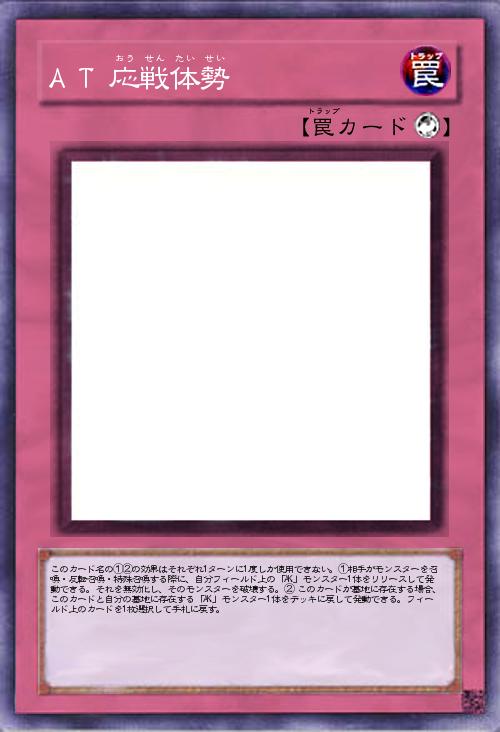 | このカード名の①②の効果はそれぞれ1ターンに1度しか使用できない。①相手がモンスターを召喚・反転召喚・特殊召喚する際に、自分フィールド上の「AK」モンスター1体をリリースして発動できる。それを無効化し、そのモンスターを破壊する。② このカードが墓地に存在する場合、このカードと自分の墓地に存在する「AK」モンスター1体をデッキに戻して発動できる。フィールド上のカードを1枚選択して手札に戻す。 | |||