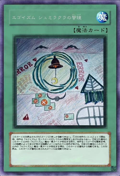 | このカードの効果はそれぞれ1ターンに1度しか発動できない。①次の相手のバトルフェイズ開始時、相手は「エゴイズム」モンスターに対してのみ攻撃宣言しなければならない。②自分の墓地にこのカード以外の「エゴイズム」魔法・罠カードが存在する限り、相手モンスターの攻撃宣言時、この戦闘によって自分が受ける戦闘ダメージは代わりに相手が受ける。③自分の墓地にこのカード以外の「エゴイズム」魔法・罠カードが存在する場合、このカードを墓地から発動できる。この効果は、このカードが墓地に送られたターンには発動できない。 | |||