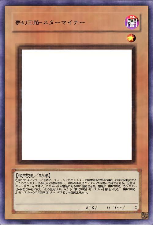 | ①自分のメインフェイズ時に、フィールドのモンスターを破壊する効果が発動した時に発動できる。このモンスターを手札から特殊召喚し、相手の手札をランダムに1枚選んで捨てさせる。②自分のエンドフェイズ時に、このカードが墓地にある時に発動できる。墓地の「夢幻回路」モンスターを4枚まで手札に戻し、その数だけデッキから「夢幻回路」モンスターを墓地へ送る。「夢幻回路」モンスターのこの効果は1ターンに1度しか発動出来ない。 | |||
