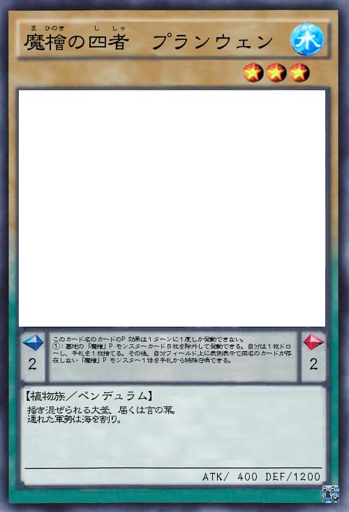 | このカード名のカードのP効果は1ターンに1度しか発動できない。 ①:墓地の「魔檜」Pモンスターカード5枚を除外して発動できる。自分は1枚ドローし、手札を1枚捨てる。その後、自分フィールド上に表側表示で同名のカードが存在しない「魔檜」Pモンスター1体を手札から特殊召喚できる。 | |||