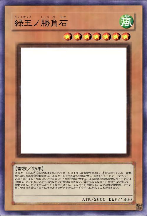 | このカード名の①②の効果はそれぞれ1ターンに1度しか発動できない。①自分のモンスターが墓地へ送られた場合発動できる。このカードを手札から特殊召喚し、「勝負石トークン」(サイバース族・光・星0・攻500/守300)1体を特殊召喚する。この効果で特殊召喚したトークンは「勝負石」リンクモンスター以外のリンク素材にできない。②手札のこのカードを相手に公開して発動できる。デッキからカード1枚をドローし、このカードを捨てる。この効果の発動後、ターン終了時まで自分はドロー以外の方法でデッキからカードを手札に加えることができない。 | |||