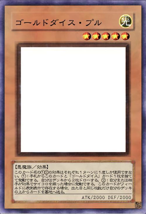 | このカード名の①②の効果はそれぞれ1ターンに1度しか使用できない。①:手札からこのカードと「ゴールドダイス」カード1枚を捨てて発動できる。自分はデッキから2枚ドローする。②:自分または相手が効果でサイコロを振った場合に発動できる。このカードがフィールドに表側表示で存在する場合、出た目と同じ枚数だけ自分のデッキの上からカードを墓地へ送る。 | |||
