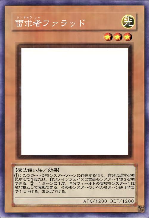 | ①:このカードがモンスターゾーンに存在する限り、自分は通常召喚に加えて1度だけ、自分メインフェイズに雷族モンスター1体を召喚できる。②:1ターンに1度、自分フィールドの雷族モンスター1体を対象として発動できる。そのモンスターのレベルをターン終了時まで1つ上げる、または下げる。 | |||