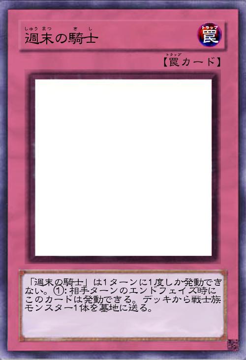 | 「週末の騎士」は1ターンに1度しか発動できない。①:相手ターンのエンドフェイズ時にこのカードは発動できる。デッキから戦士族モンスター1体を墓地に送る。 | |||