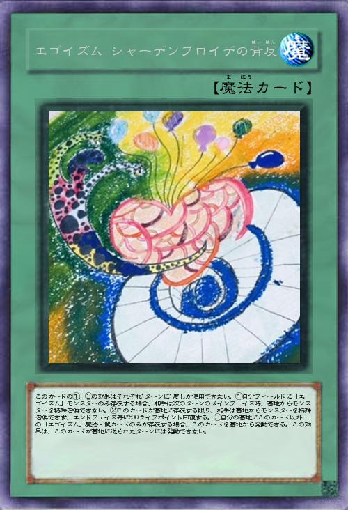 | このカードの①、③の効果はそれぞれ1ターンに1度しか使用できない。①自分フィールドに「エゴイズム」モンスターのみ存在する場合、相手は次のターンのメインフェイズ時、墓地からモンスターを特殊召喚できない。②このカードが墓地に存在する限り、相手は墓地からモンスターを特殊召喚できず、エンドフェイズ毎に500ライフポイント回復する。③自分の墓地にこのカード以外の「エゴイズム」魔法・罠カードのみが存在する場合、このカードを墓地から発動できる。この効果は、このカードが墓地に送られたターンには発動できない。 | |||