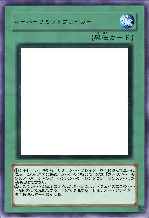 | ①:手札・デッキから「リミッター・ブレイク」を1枚選んで墓地に送る。この効果の発動後、ターン終了時まで自分は「ウォリアー」モンスターか「ジャンク」モンスターか「シンクロン」モンスターしか特殊召喚できない。 ②:このカードが墓地に送られたターンのエンドフェイズにこのカードを除外して発動できる。自分の墓地から「リミッター・ブレイク」を1枚選んで手札に加える。 | |||