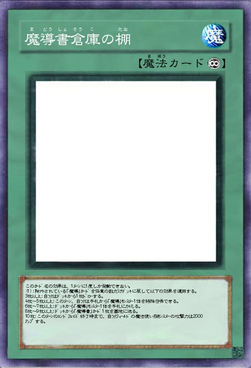 | このカード名の効果は、1ターンに1度しか発動できない。 (1):除外されている「魔導」カードを任意の数だけデッキに戻して以下の効果を適用する。 3枚以上:自分はデッキから1枚ドローする。 4枚~5枚以上:このターン、自分は手札から「魔導」モンスター1体を特殊召喚できる。 6枚~7枚以上:デッキから「魔導」モンスター1体を手札に加える。 8枚~9枚以上:デッキから「魔導書」カード1枚を墓地に送る。 10枚:このターンのエンドフェイズ終了時まで、自分フィールドの魔法使い族モンスターの攻撃力は2000アップする。 | |||