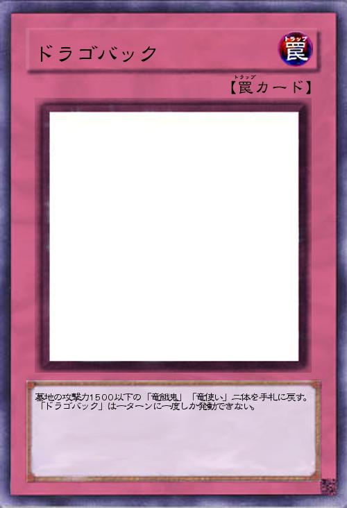 | 墓地の攻撃力1500以下の「竜餓鬼」「竜使い」二体を手札に戻す。「ドラゴバック」は一ターンに一度しか発動できない。 | |||
